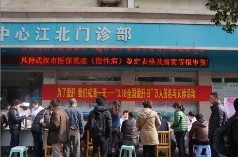 ——武汉市医疗救治中心于江汉北路门诊部举办义诊,组织6位知名肝病专家现场宣教肝病知识,让数百名市民在自家门前就享受到免费医疗服务。