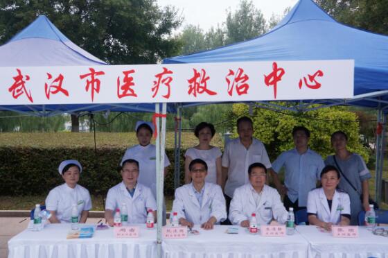 武汉市医疗救治中心由张定宇院长带队共计派出10余名各科专家和多名医护工作者来到江滩活动现场为市民的提供咨询服务,现场气氛热烈,市民们参与热情很高,现场共接待100余名群众的咨询并发出百余份宣传资料。湖北省卫计委杨云彦主任也来到现场亲切慰问现场的各医务人员和前来咨询的群众。