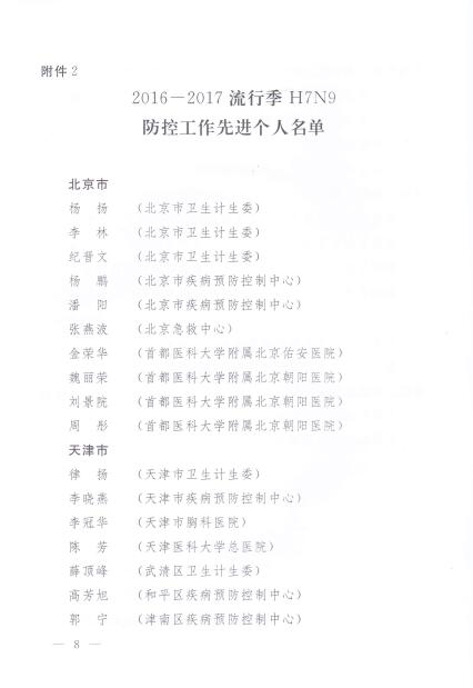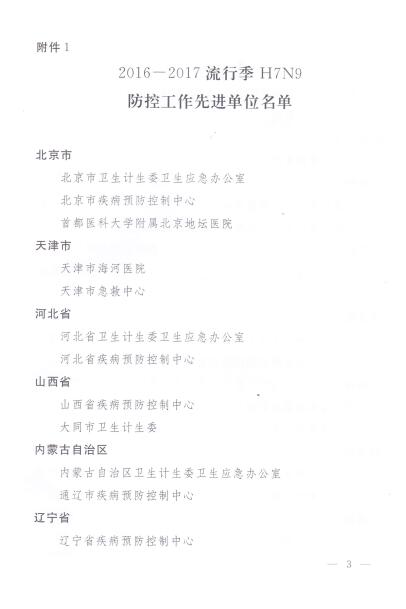 《关于通报表扬2016-2017流行季H7N9防控工作先进单位和个人的通知》
