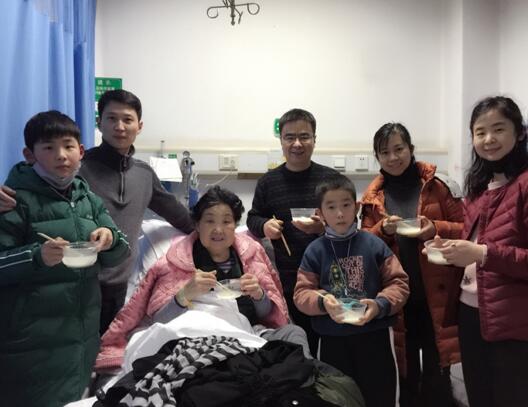 65岁的她是名离休的医生,因为病情原因,没能出院,不能回家,没能吃上那寓意“合家之欢”的年饭,她说往年都是她守护患者,不管风里雨里节日里,从来都是自己陪伴守护那些需要的人,今年自己却可以躺在病床上,倒是能完整的看一次春节晚会了,虽然话语轻松,但我们分明感受到了她内心的落差和孤寂。所以早上护士们带着小礼品去给阿姨拜早年的时候,阿姨特别高兴,一直说今天我们是一家人,一起守岁,一起跨年,当然还要来个“全家福”。