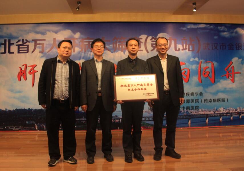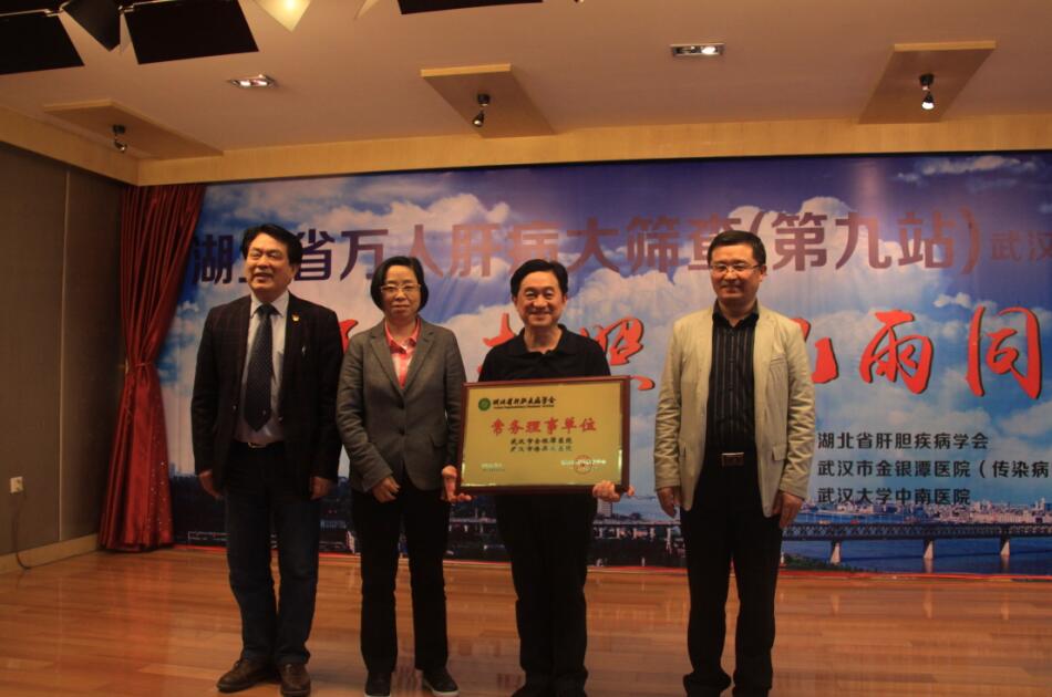 )颁发了湖北省肝胆疾病学会常务理事单位及湖北省万人肝病大筛查定点合作单位牌匾。