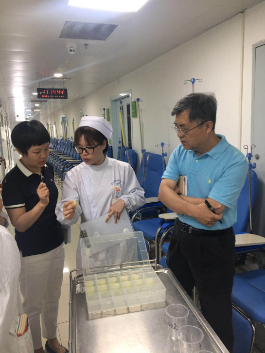 专家对期临床研究室的门诊筛查区域和试验病房进行实地考察的同时,对工作人员就试验操作中的重点环节进行提问并进行现场模拟,如给药、采血、样本分离、药品及资料管理的人员配置及关键点的质量控制等。工作人员流利的回答和自信的应对,给专家留下了深刻的印象。