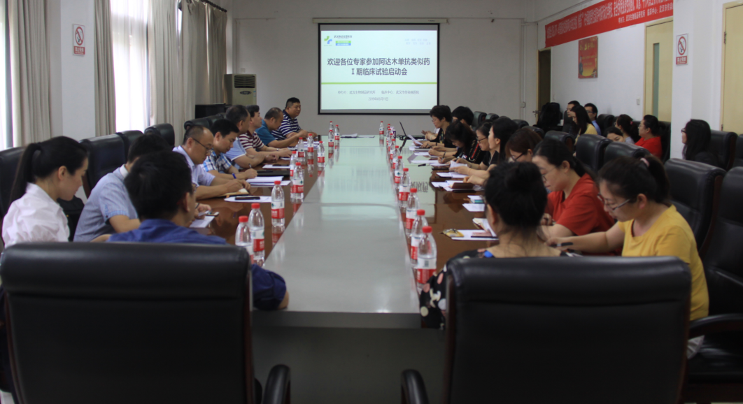 2019年6月11日下午,“重组全人源抗人TNF-α单克隆抗体注射液和阿达木单抗注射液I期临床试验启动会”在武汉市传染病线上德州扑克平台 行政楼会议室隆重举行,武汉生物制品研究所有限责任公司(申办方)、 北京博纳西亚医药科技有限公司(CRO)、上海迈兰医药咨询有限公司(SMO)各派团队参加了此次会议,武汉市传染病线上德州扑克平台 张定宇院长作为本项目主要研究者(PI)出席会议,Ⅰ期临床试验研究室医生、护士、样本和药学专业组代表均到场参会。