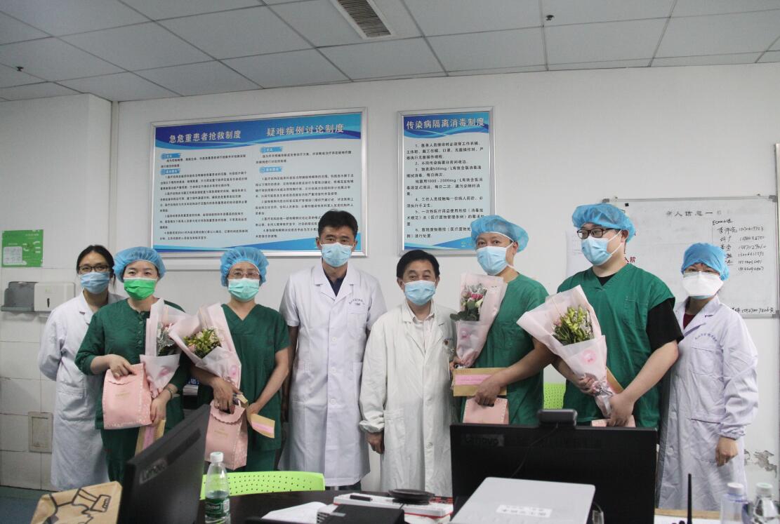 下午4时,南六病区繁忙依旧,病房里不时传来呼叫声,医生们针对病重患者病例进行着讨论,护士们则在一旁进行配药、核对医嘱、查房、做治疗等工作。“感谢大家为抗击新冠肺炎疫情所做的努力,我代表院党委感谢你们!”走进南六病区医生办公室,王书记传达了全市卫生健康系统慰问工作的安排,并与姚书记分别为医务代表吴文娟、瞿昭晖及感染的医务代表杨扬送上慰问花束、水果和一封慰问信。“现在身体情况怎么样?”得知杨扬身体恢复很好后,院领导再次嘱咐大家要注意防护。