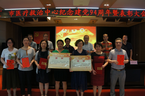 6月29日下午,市医疗救治中心在院行政楼三楼学术报告厅召开纪念建党94周年暨表彰大会,会议由党委副书记、院长张定宇同志主持,全体院领导、中层干部、部分党员代表101人参加会议。