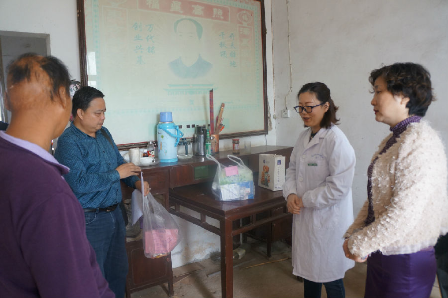 上午9时,在村支部黄书记等村委会干部的陪同下,扶贫工作组一行先到周黄湾低保户黄小革家中,文主任仔细询问了其如何发病、病情进展、目前所服药品,为他进行了体格检查,根据他平时服药情况赠送了他所需的药品,并详细告知其服药方法,提醒患者定期到正规线上德州扑克平台 进行健康体检。在患有精神疾病居民冯爱华家,文主任为患者进行了心理辅导,要患者保持心情愉快,不要有心里负担,任何疾病只要积极配合治疗都会有好转机会,并将药品送到患者手中,指导患者服药。怕患者记不清药物服用剂量,文主任特地将药物剂量及次数写在药瓶上,并一再叮嘱家属要按时定量督促患者坚持长期用药。随后扶贫工作组又到其他三位慢性疾病的患者家中,一一送药上门进行专业指导。在走访5位重症患者家庭后,刘书记一行还将其他常用药物分发给了当地有需求的村民。