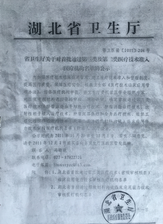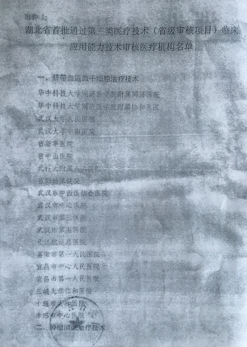 省卫生厅关于对首批通过第三类及第二类医疗技术准入医疗机构名单的公示