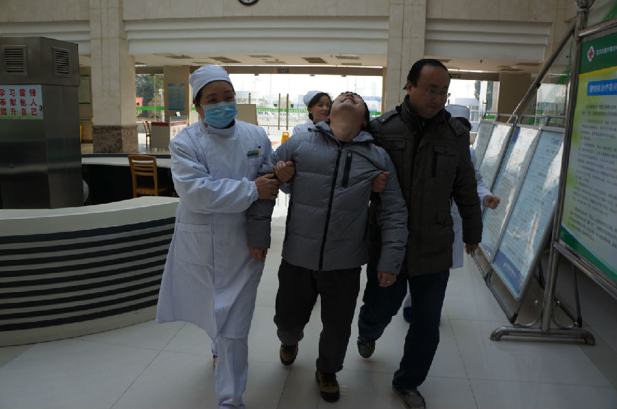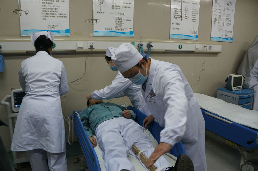 急救外伤抢救的模拟现场,此次模拟分为两场,一场为120急救送来的外伤病人,另一场为门诊自身前来的醉酒病人。