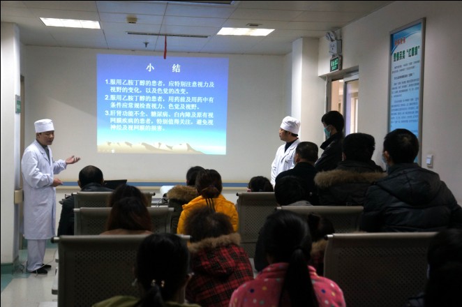 2014年2月26日下午,线上德州扑克平台网 公共卫生科、爱卫办组织了今年首次健康大讲堂,由眼科李大正主治医师在门诊眼科候诊区对结核病患者进行了《乙胺丁醇对眼视神经的损害》的专题讲座,50余名患者及家属到场聆听。