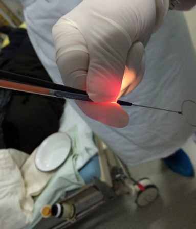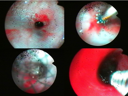 图为:术中植入支架镜下表现