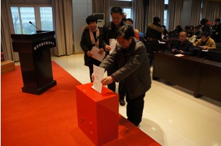 图为:职工代表对新提拔干部进行民主测评投票