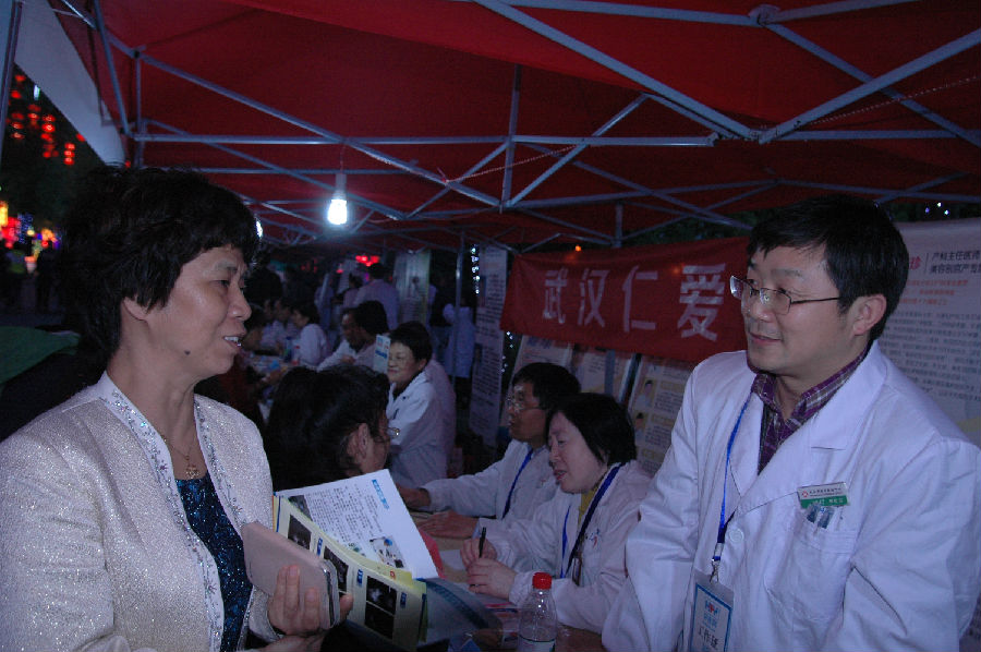 4月20日晚,线上德州扑克平台网 超声介入科余松远主任来到东湖,与其余29名武汉市“第三届我心目中的好医生”一起参加由市卫计委、武汉晚报梦工场、好医网联合举办的“好医生”灯会夜诊。