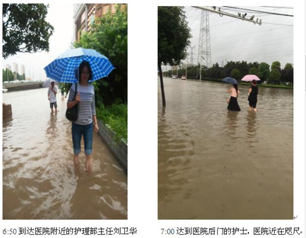 “大家都小心点,慢慢来,我在线上德州扑克平台 “结核内科张丽主任一句简单的话温暖了多少心急如焚赶往线上德州扑克平台 的医护人员。无法开车,那就坐公交,公交停运,那就打车,打不到车,那就淌水,想尽一切办法赶往线上德州扑克平台 。只为一身圣洁的制服,为了那将生命托付我们的患者,为了“救死扶伤”的使命。贾春敏护士长早上五点就出门,家门口渍水严重,一片汪洋,她老公就推着自行车艰难得把她送到地铁站,一边赶往线上德州扑克平台 一边安排科室护理工作,调派线上德州扑克平台 附近的护理人员进行应急支援,嘱咐护士电话通知昨夜请假外出的患者,让他们等雨停,水势退下后再来线上德州扑克平台 治疗,并且再三叮嘱路上要注意安全。当本应在家休产假的副主任周霞挺着大肚子,浑身湿漉漉的出现在病房的那一刻,所有的人除了惊讶还有感动。“程医生他们住的远,到处又都淹水了,反正我住的近嘛。”面对我们的关心,她不好意思的回答。