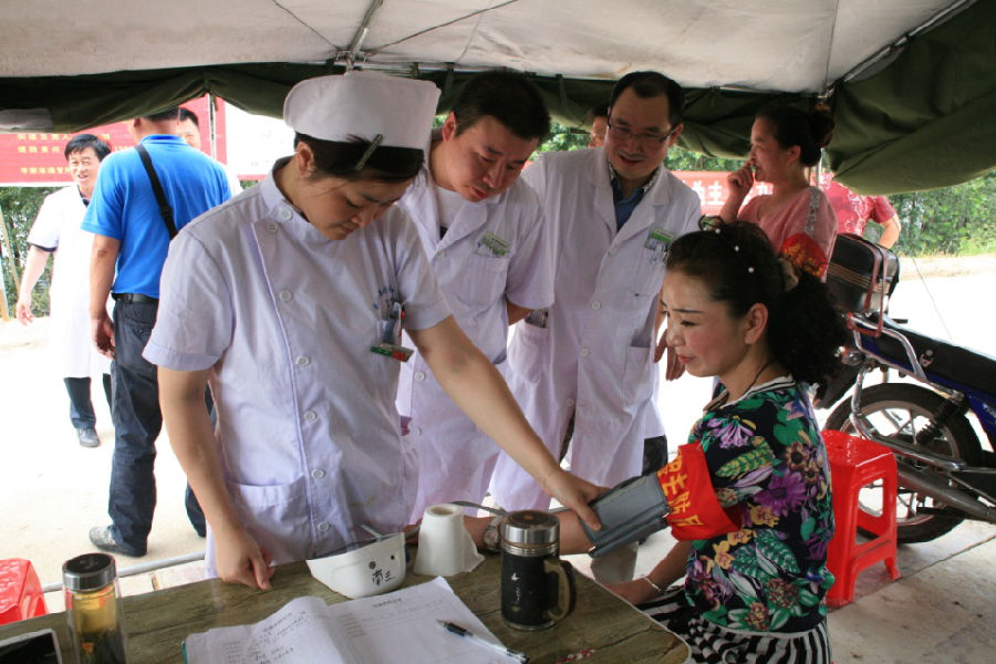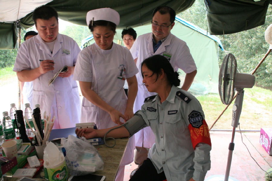作为一所应对突发公共卫生事件的医疗机构,7月18日下午,武汉市医疗救治中心党委书记王先广带领医疗队一行六人赶到东西湖大堤将军路街的七个值守点,为20余名大堤值守人员送医送药。医疗队为值守人员们进行了健康体检,对两位高血压人员和一名皮疹人员进行了诊治,还为值守人员们进行了夏季防暑降温和如何预防灾后传染病的相关知识进行了讲解。值守人员对医疗队的到来表示感谢,线上德州扑克平台网 也承诺在防汛期间有任何医疗需求,线上德州扑克平台网 的医疗队一定第一时间赶往现场,为值守人员做出贡献。