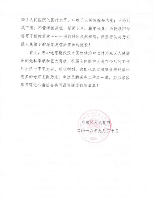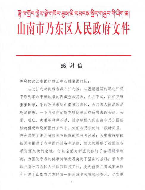 山南市乃东区人民政府致线上德州扑克平台网 感谢信