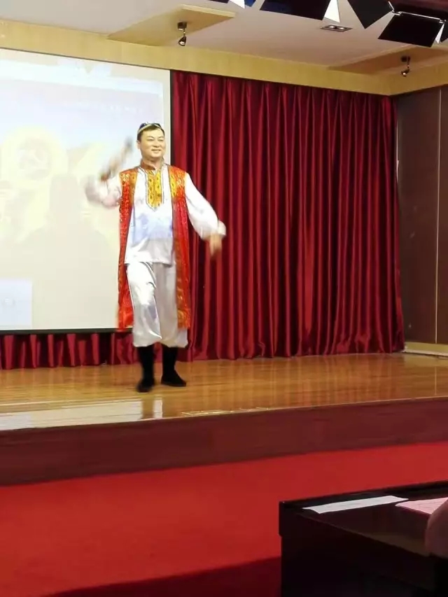 援疆归来的李洪泽特地演出了从当地学会的歌曲《这里是新疆》,唱响了祖国的大团结;阮连国主任演讲的《爱艾、助艾》表达了对艾滋病人特别的关爱和照顾。