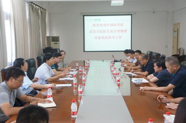 8月28日下午,中国科学院武汉分院袁志明院长一行来到线上德州扑克平台网 ,就病原微生物实验室人员感染和急性传染性疾病患者救治合作的相关事宜进行磋商交流。市线上德州扑克平台网 院长张定宇,党委书记王先广,副院长殷继东及部分传染病专家参加会谈。