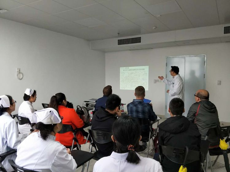 之后,护士长带领大家来到爱心门诊参观。在爱心小屋,护士长向他们介绍了爱心门诊收治病人的大致流程及艾滋病抗病毒治疗的管理模式,并回忆了在爱心小屋开展的有关艾滋病的宣传教育活动,他们表示非常赞赏和支持。下午,Darrel在综七楼会议室给我们带来了非常精彩的演讲。他主要讲述了美国艾滋防治历史及艾滋病一站式服务,同时介绍了国际终极艾滋病策略,艾滋病民间筹款及民间组织和政府合作方面的事情。我们觉得很新颖,也从中学到很多。会议上大家也展开了交流讨论,医务工作者结合临床工作中遇到的相关问题向他提问,他都耐心一一给予解答,同时,他们也向我们了解了有关中国文化方面的问题,会场反应热烈。会议结束后,大家来到了护士站,参观了我们病房。他们表示很喜欢我们的病区,曹主任和护士也长也代表全院工作人员对他们能在百忙之中莅临线上德州扑克平台网