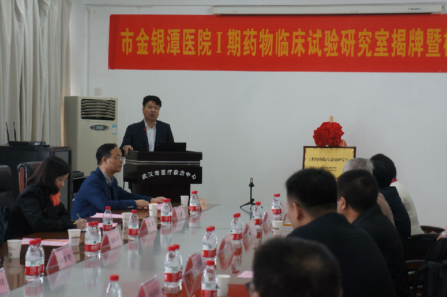 上午9点,在行政楼1号会议室内,院长张定宇亲自主持揭牌仪式。湖北省食品药品监督管理局杜汉叶处长、武汉市卫生计生委董云萍处长讲话指出药品安全是重大的民生和公共安全的问题,事关人民群众身体健康和社会和谐稳定。并表示这标志着我市创新药研究及医药科研走向一个新的台阶。