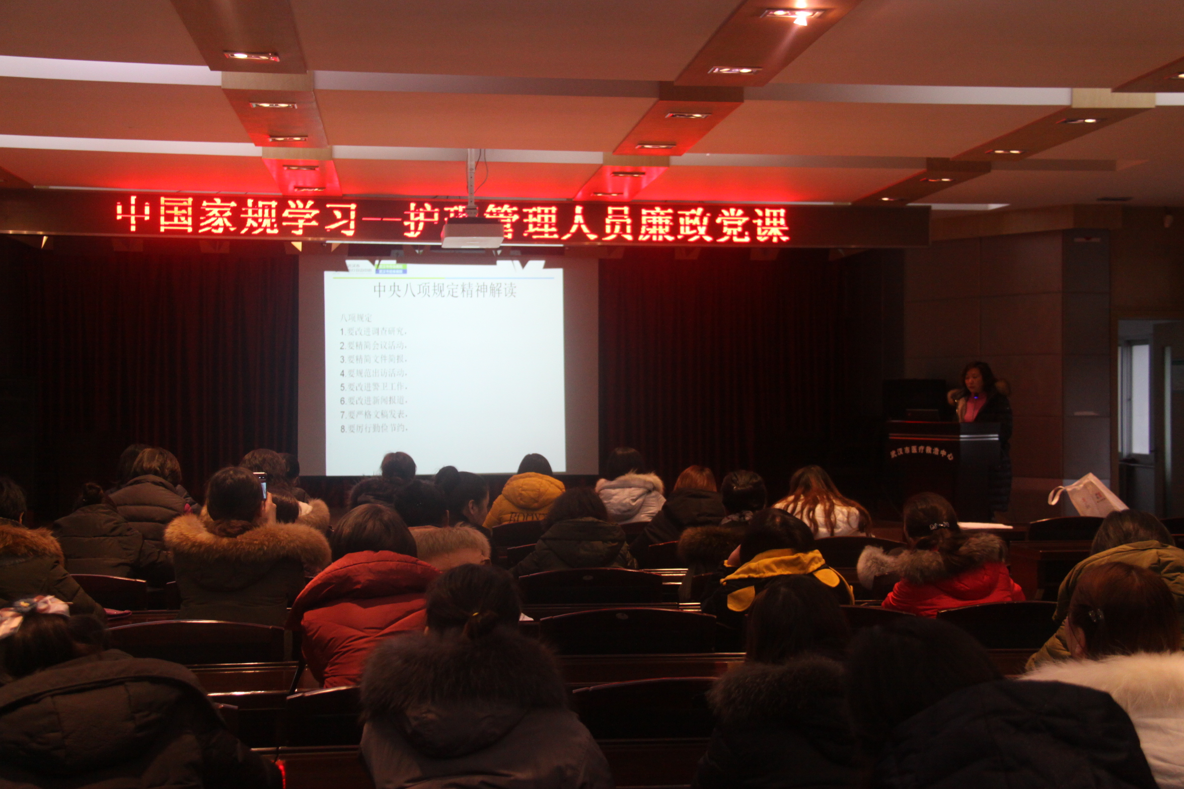 2018年1月24日下午,线上德州扑克平台网 在多功能报告举办了《中国家规》学习---廉政党课专题讲座。全院护理管理员共50余人聆听了讲座。这次讲座,特邀院纪委书记刘惠敏授课。
