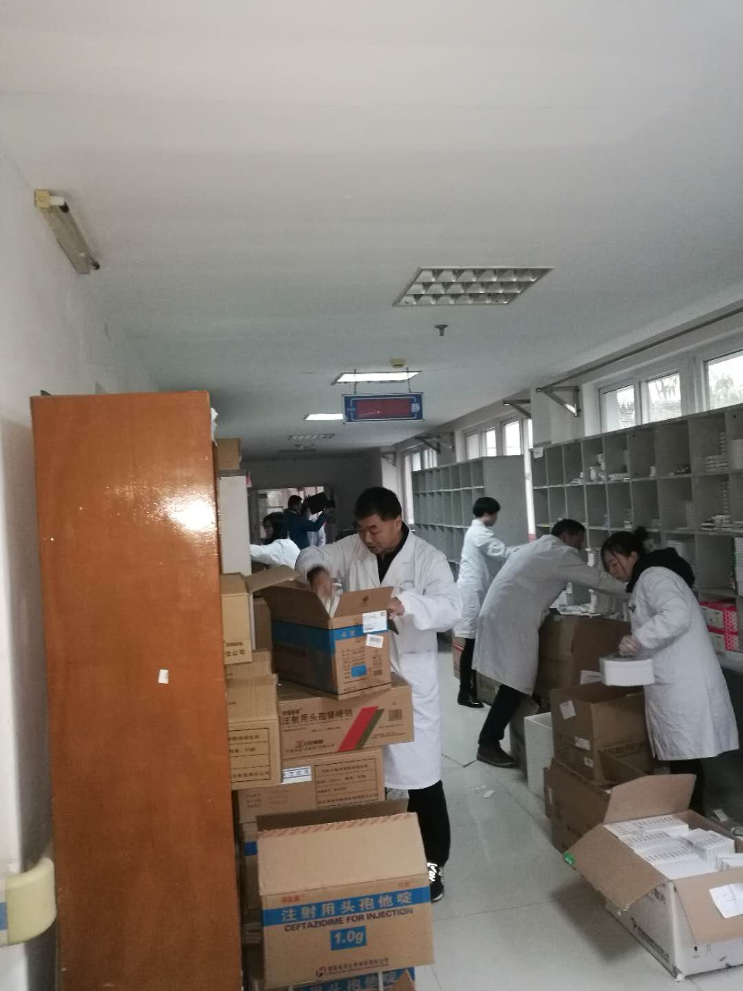 统一部署积极忙于住院药房整体搬迁。分管领导朱琥院长也来到药房,现场指导。老同志鲍骏尽管有病在身,也从家里赶来了,忙着为药品上货架;闫勇作为一名老党员,本应该在家里夜班补休的,听说要搬家也赶到了科室;还有住院药房班组长陈靖赜为了便于药品定位,精心制作了药品摆放索引图。 所有人员通力合作,放弃中午休息时间,完满的完成了搬迁工作,当天下午新住院药房就开始正常运作,为临床一线发放药品。 在大家的齐心协作下,经过一整天的忙碌,顺利完成了住院药房搬迁。新的住院药房焕然一新,宽敞明亮,药品摆放井井有条, 2018年宽敞明亮的新住院药房,会规范管理,以新的姿态,更好的为临床提供药品服务。