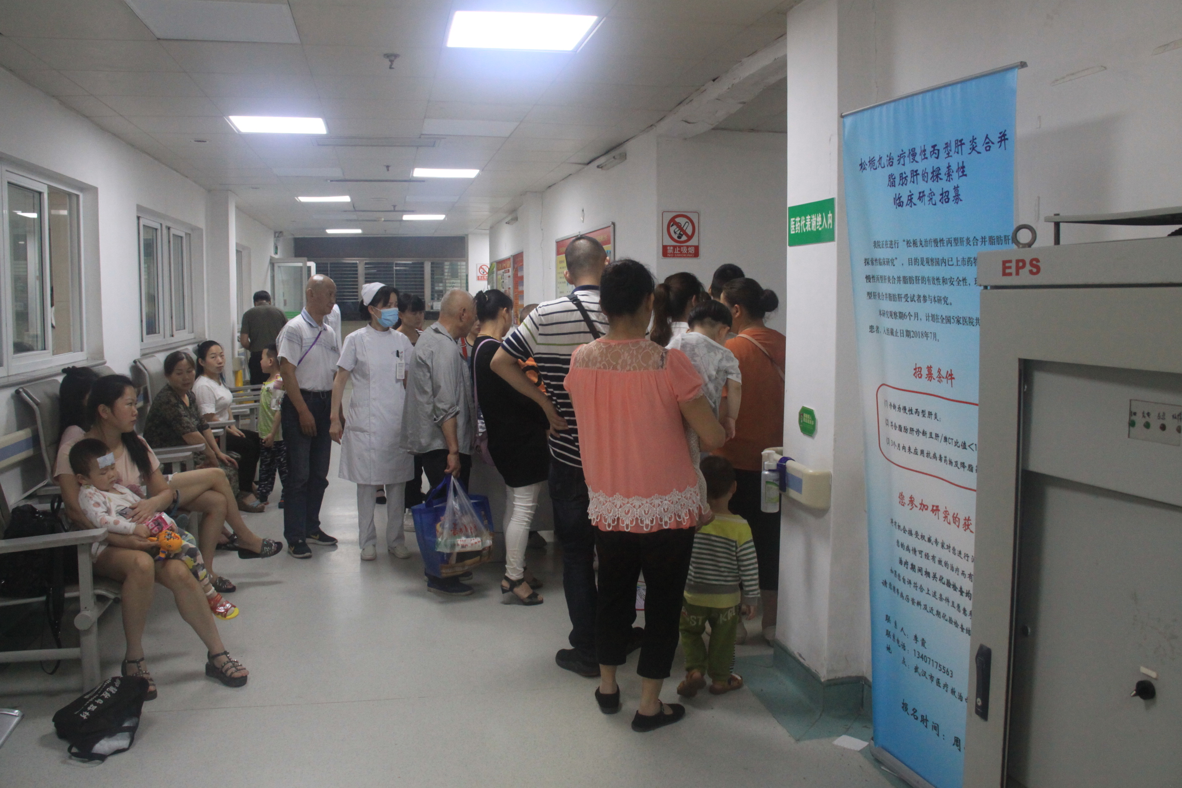 “你好,我屋滴伢说是怀疑手足口病,他只是有点发烧,怎么办啊?”“好,先不要紧张,您先办张就诊卡,然后去挂感染科的号,让医生看看小朋友!”······高峰期以来,每天接诊的手足口病等传染病患儿初诊和复诊平均200人左右,门诊大厅及感染性疾病科诊室门口人头攒动。