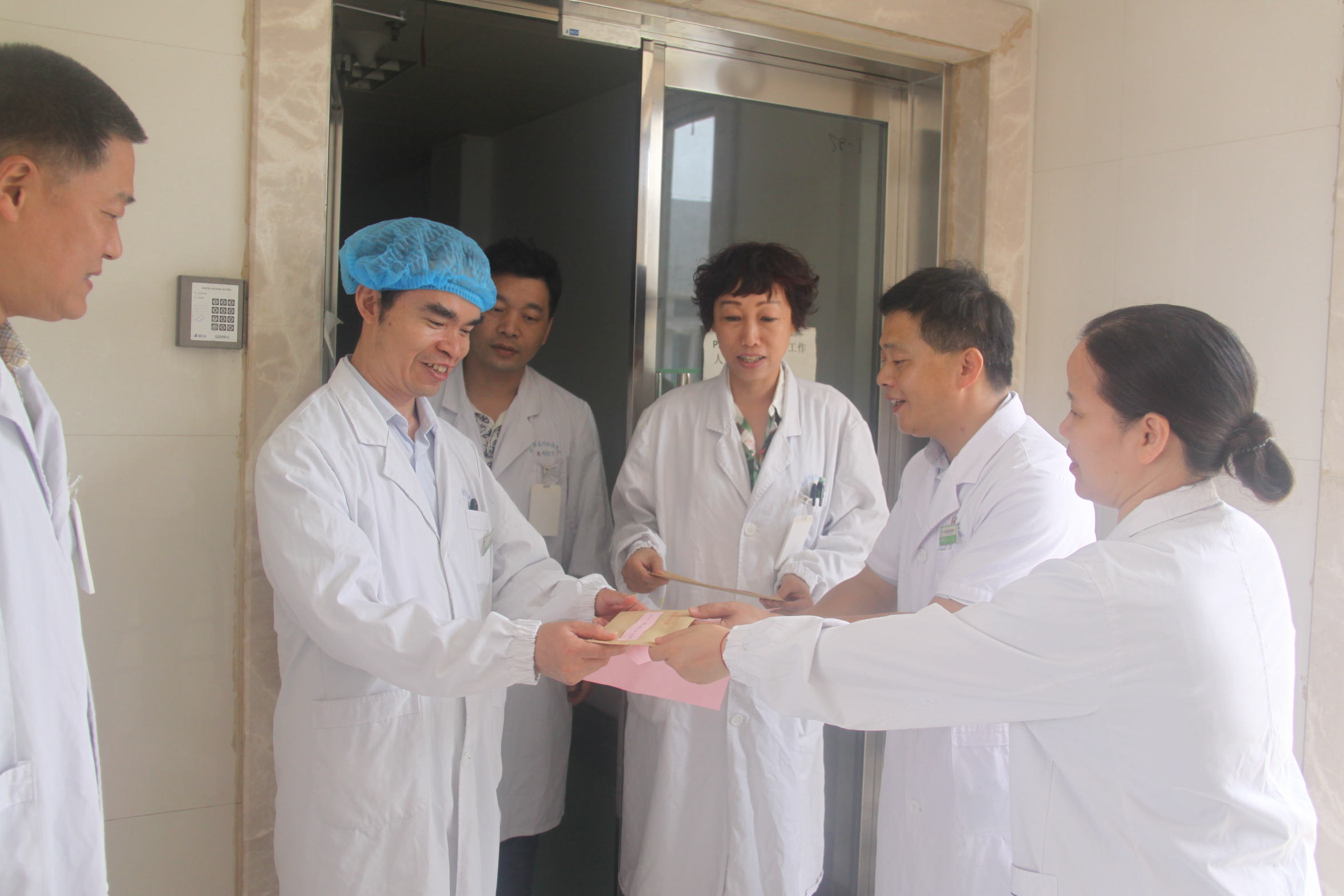 8月1日,适逢建军节91周年来临之际,院党委书记王先广带领班子成员及党政工团负责人一行12人,兵分两路深入科室走访慰问了30名转业、复员退伍军人及现役军人家属,为他们送上节日慰问品和祝福。为33个临床医技科室医务人员送上“清凉”慰问品,为他们送去党组织和工会的关怀。