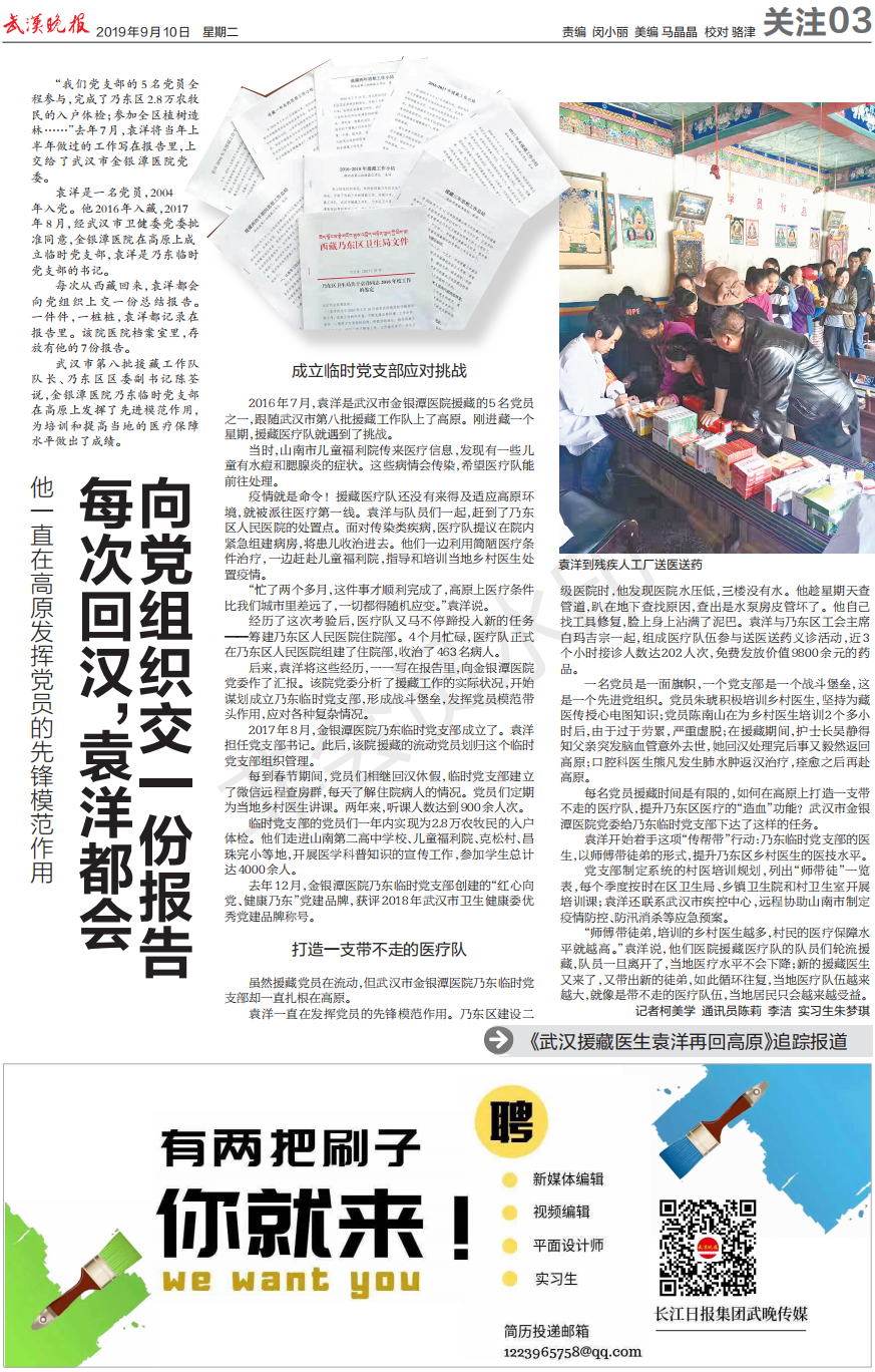 2016年7月,袁洋是线上德州扑克平台网 援藏的5名党员之一,跟随武汉市第八批援藏工作队上了高原。刚进藏一个星期,援藏医疗队就遇到了挑战。