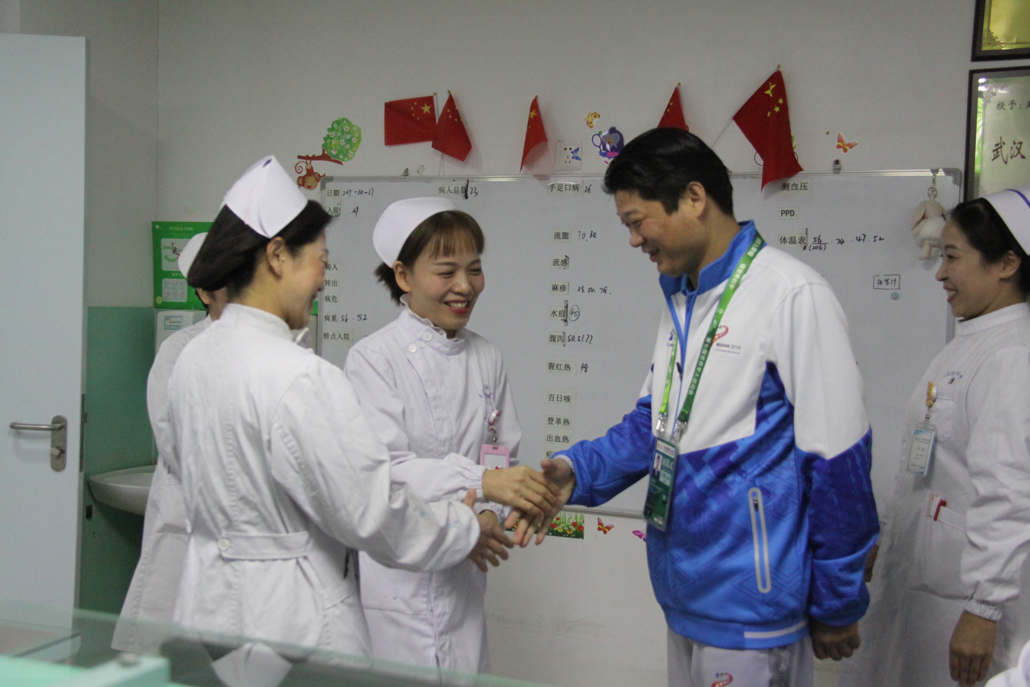 随后,张红星书记、主任来到医务人员办公室,了解两名患者的医疗救治情况,详细听取了线上德州扑克平台 在军运会保障方面所做的工作,并与医务人员进行了亲切交谈。张红星书记、 主任说,今天来到这里看到线上德州扑克平台网 每一位职工都充分做好了应对传染性疾病的准备,这让我们有勇气,更有底气的应对这场重要的国际赛事。张书记指示,虽然军运会马上就要闭幕了,但我们不能放松,要坚守到最后一秒,善始善终,决战决胜。以后像军运会这样的国际赛事在武汉将会成为常态化,武汉市也将成为国内四大国际交往中心之一,我们要有一颗开放、包容的心态,加强学习和交流,让我市成为一座国际化、现代化、生态化城市。