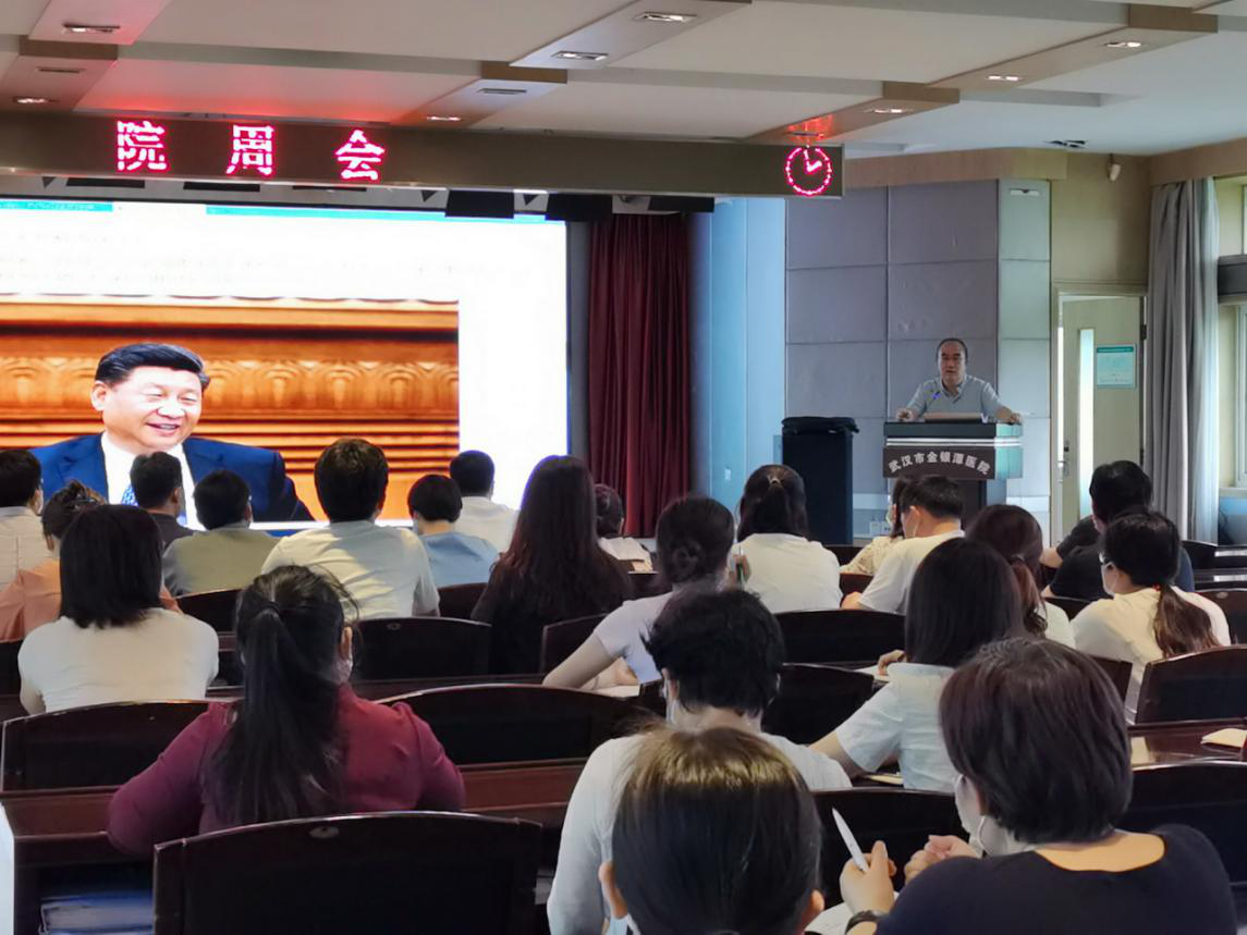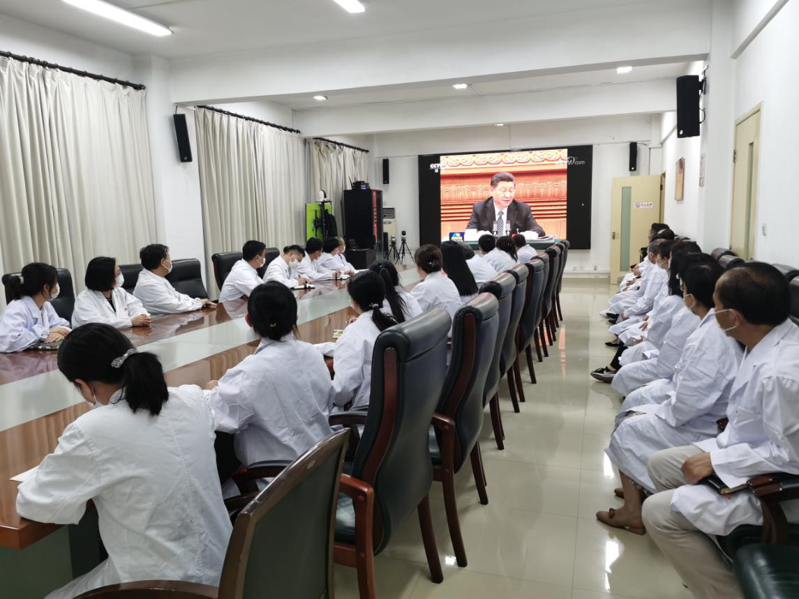 张定宇院长带领大家逐字逐句学习了习总书记的讲话内容,他强调,习总书记始终关注着武汉的疫情变化和零星的确诊病例,我们要紧绷神经、心怀忐忑,慎终如始、再接再厉的做好目前在院患者的医疗救治工作,要对得起党和人民对我们的信任和嘱托。