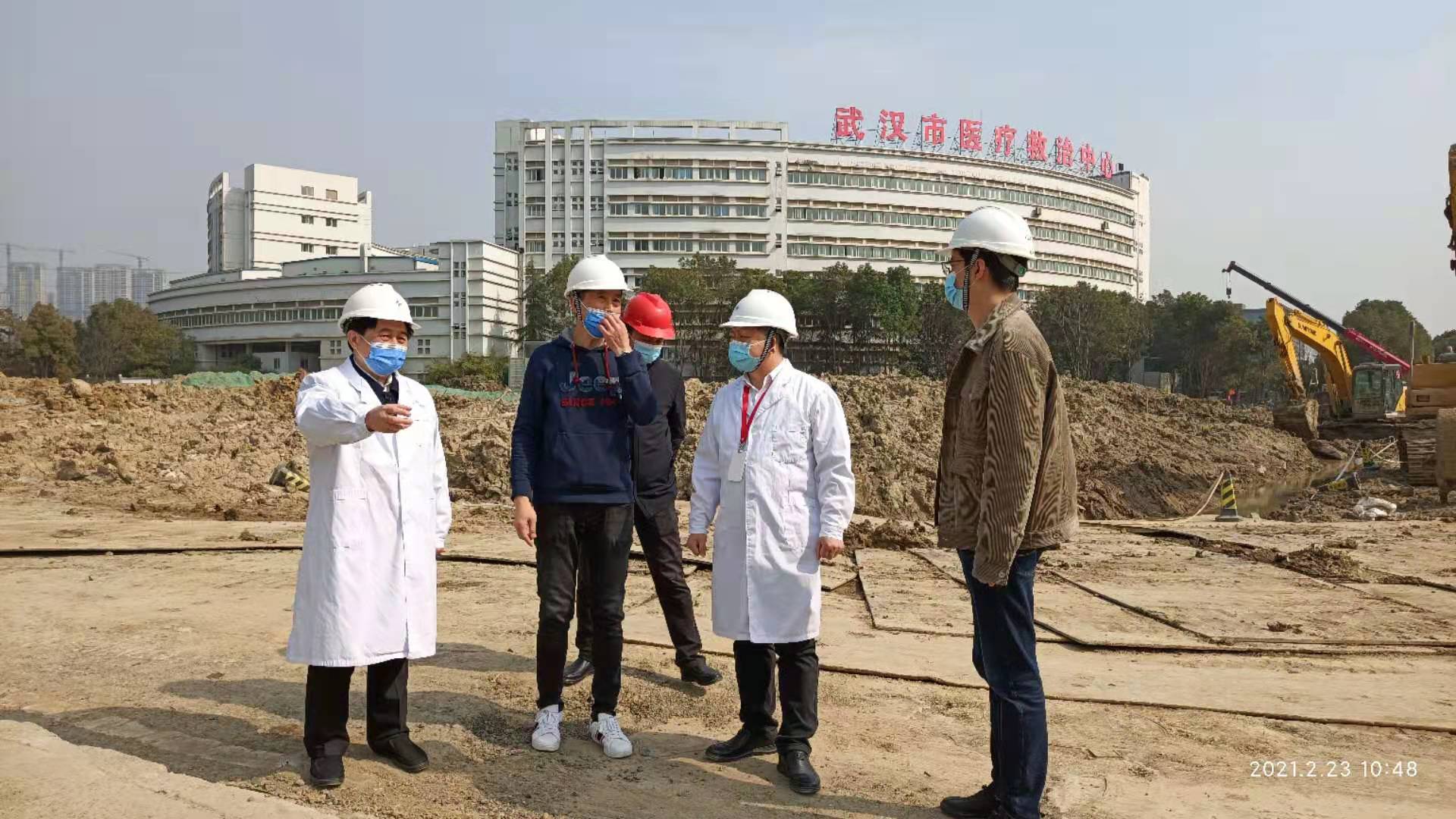 在应急病房楼工地,黄朝林院长仔细询问了项目复工进展、工人返场率、工程计划等情况,他特别强调:要加强工地的疫情防控工作,严格执行测体温、核酸检测等制度,确保疫情安全。