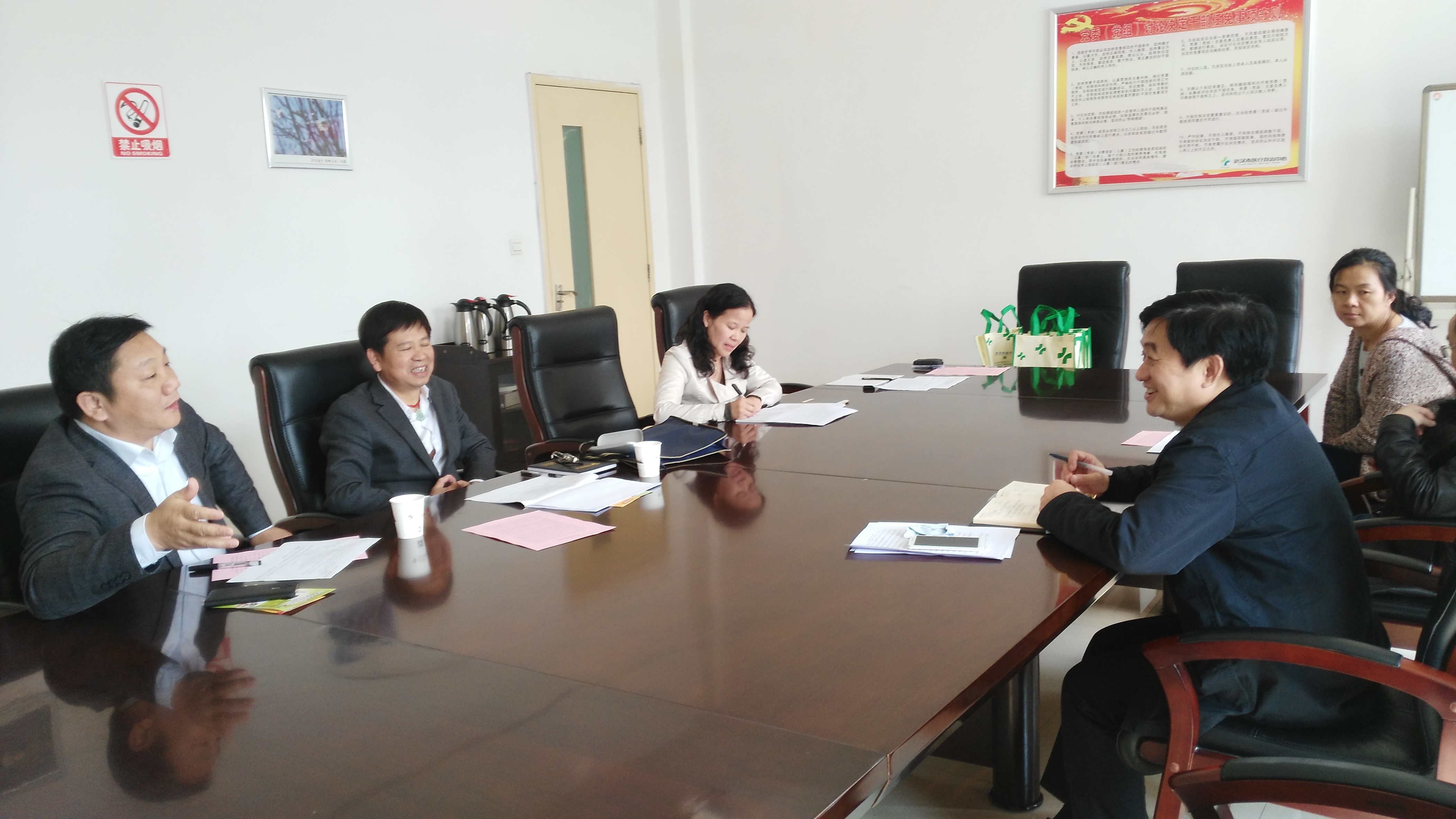 11月1日上午,市线上德州扑克平台网 邀请共建单位--硚口区宗关街社区卫生服务中心闵坦书记、二八八线上德州扑克平台 王玉书记一行四人来院座谈交流党建经验,回顾总结前期“十百千”党建工作,商议下步党建共建活动。