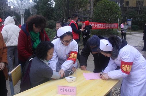 上午9时,虽然活动现场阵阵寒风吹来,冷嗖嗖的,但我们的医疗专家及志愿服务者都认真接待每一位前来咨询的居民,向他们讲解呼吸道疾病及春季儿童疾病的预防和治疗,解答他们的疑惑,针对老人感冒咳嗽、血压不稳、消化不好等病情,免费发放了价值2000余元常用药品。一位80多岁的老太太,在女儿的陪同下,先后两次来到吴文娟主任咨询点,将就诊病历拿来详细咨询了自身疾病情况并领取免费用药。在免费测量血压点,中老年居民排起了长长的队伍,志愿护士一个接一个测量,登记,针对中老居民血压偏高的情况,建议居民及时就诊,指导居民从饮食、药物等方面进行调控。活动结束时,又有十来位老年居民来到医疗志愿服务点申请测量血压,志愿者将收拾好的血压计再次从包装盒中取出,认真地为居民测量。