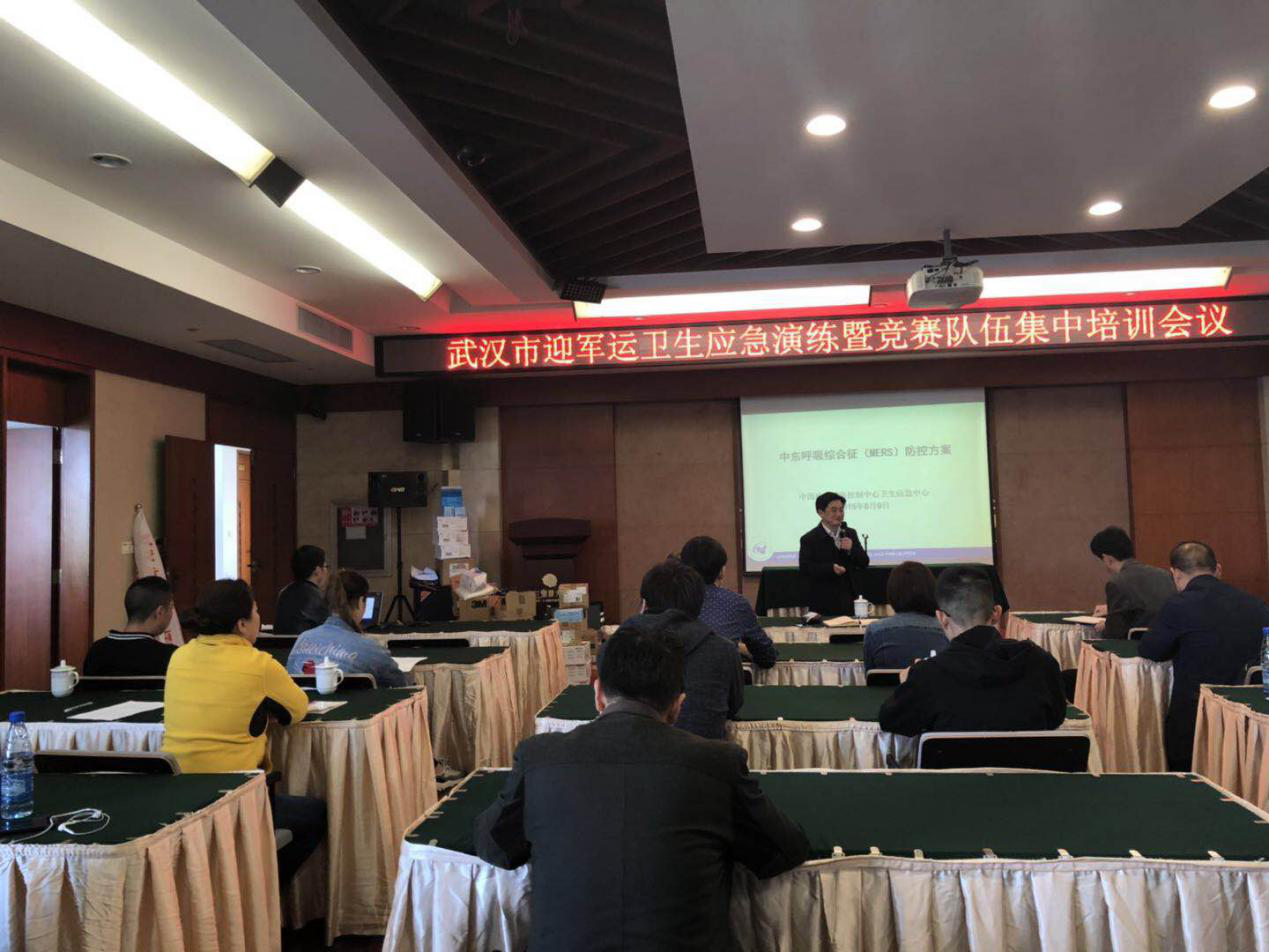 下午2时,大家在简短的午餐后,立刻又投入到紧张的理论培训中,会前王书记对所有参加武汉军运会输入性中东呼吸综合征疫情(MERS)联合应急处置演练的队员们给予了充分肯定,勉励大家要克服困难,通过封闭集训不断查漏补缺、熟练配合,在最终全省卫生应急演练中取得完美表现。市疾控中心应急办金小毛主任凭借丰富应急经验,针对国家2015版中东呼吸综合征(MERS)防控方案要点频频发问,帮助大家确保演练技术路线科学性。