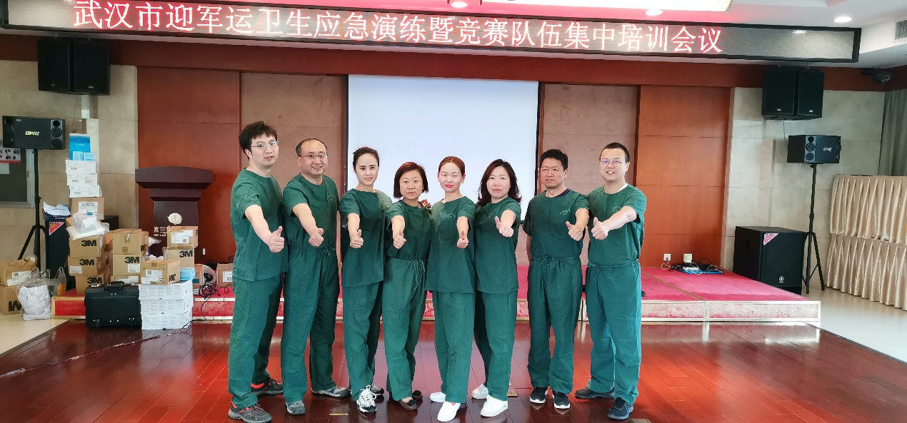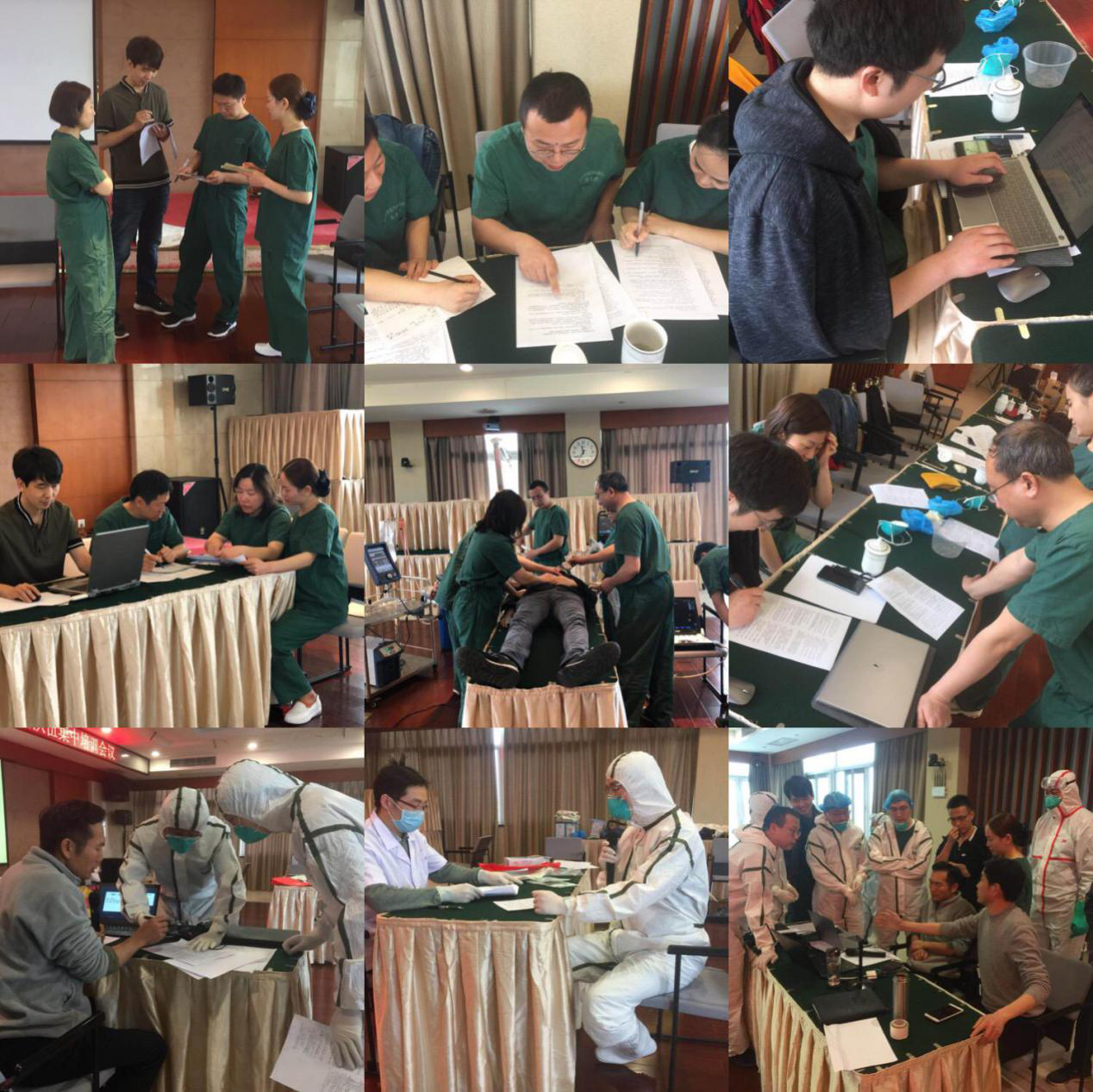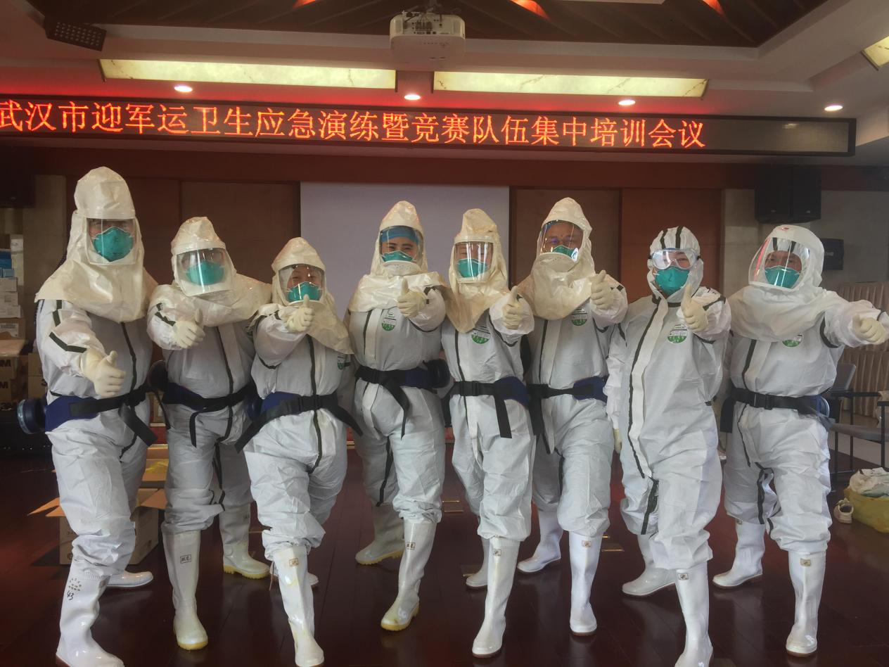 10名来自各临床专业岗位的中青年骨干医务人员集结完毕,出发前往黄陂区木兰乡,为了即将在月底举办的 “2019年全省卫生应急演练——武汉军运会输入性中东呼吸综合征疫情(MERS)联合应急处置”进行最后的封闭式冲刺训练。