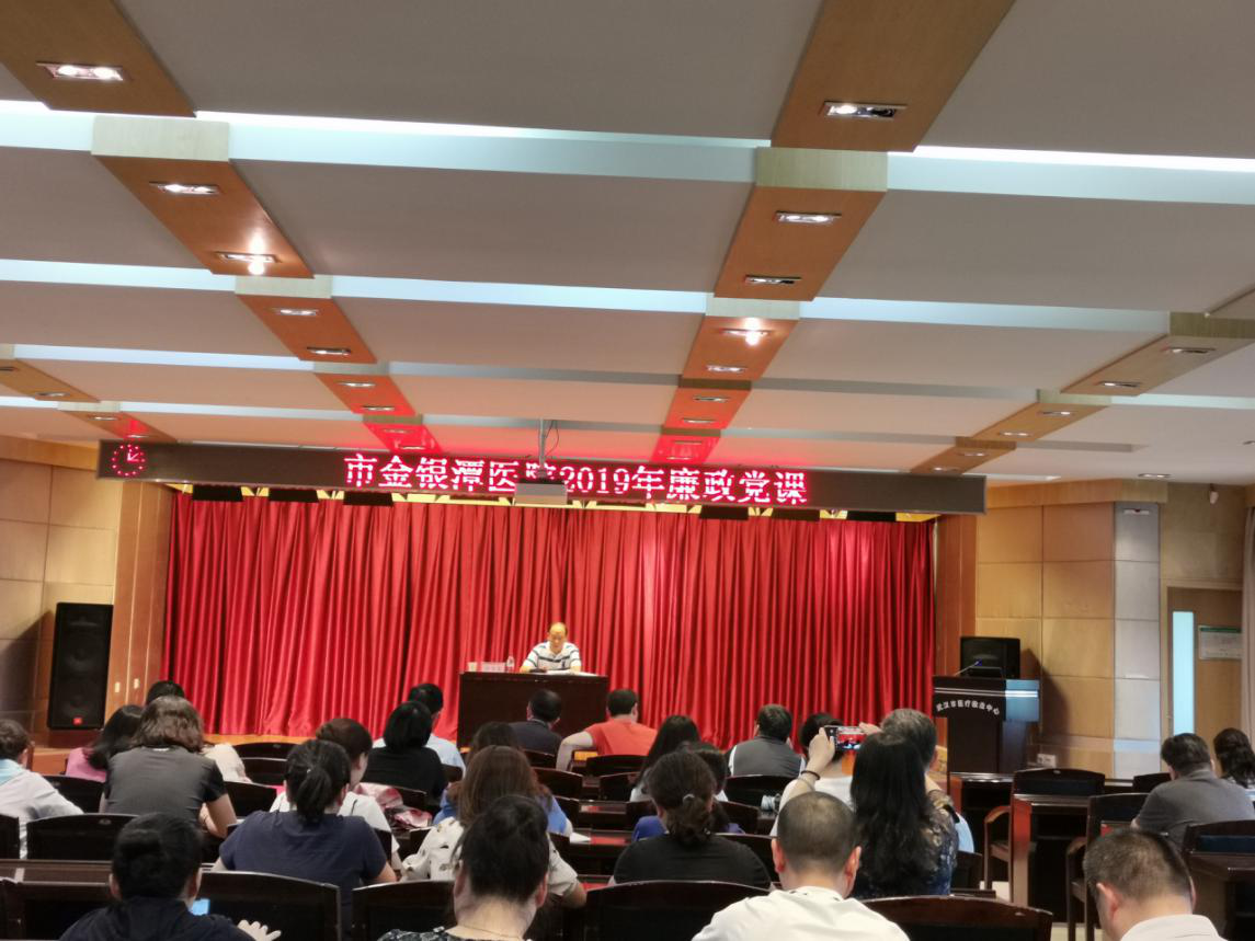 2019年6月5日下午,市线上德州扑克平台网 紧紧围绕深入学习党章党规党纪和监察法、自觉践行“两个维护”’主题,组举办党风廉政专题党课,为100余名中层干部、党员代表和重点岗位职工上了一堂生动、深刻的廉政党课。