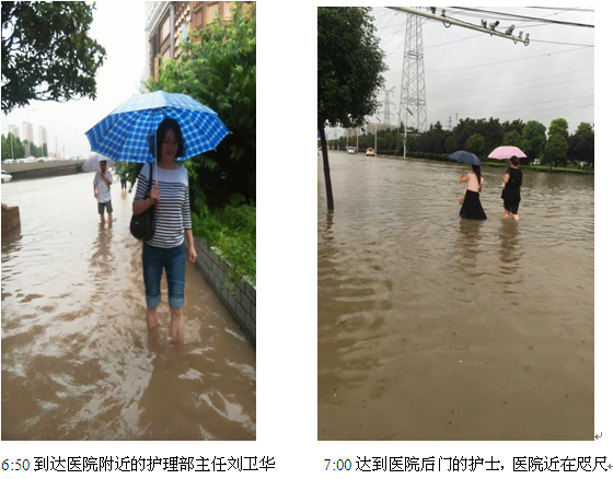 “大家都小心点,慢慢来,我在线上德州扑克平台 “结核内科张丽主任一句简单的话温暖了多少心急如焚赶往线上德州扑克平台 的医护人员。无法开车,那就坐公交,公交停运,那就打车,打不到车,那就淌水,想尽一切办法赶往线上德州扑克平台 。只为一身圣洁的制服,为了那将生命托付我们的患者,为了“救死扶伤”的使命。贾春敏护士长早上五点就出门,家门口渍水严重,一片汪洋,她老公就推着自行车艰难得把她送到地铁站,一边赶往线上德州扑克平台 一边安排科室护理工作,调派线上德州扑克平台 附近的护理人员进行应急支援,嘱咐护士电话通知昨夜请假外出的患者,让他们等雨停,水势退下后再来线上德州扑克平台 治疗,并且再三叮嘱路上要注意安全。当本应在家休产假的副主任周霞挺着大肚子,浑身湿漉漉的出现在病房的那一刻,所有的人除了惊讶还有感动。“程医生他们住的远,到处又都淹水了,反正我住的近嘛。”面对我们的关心,她不好意思的回答。